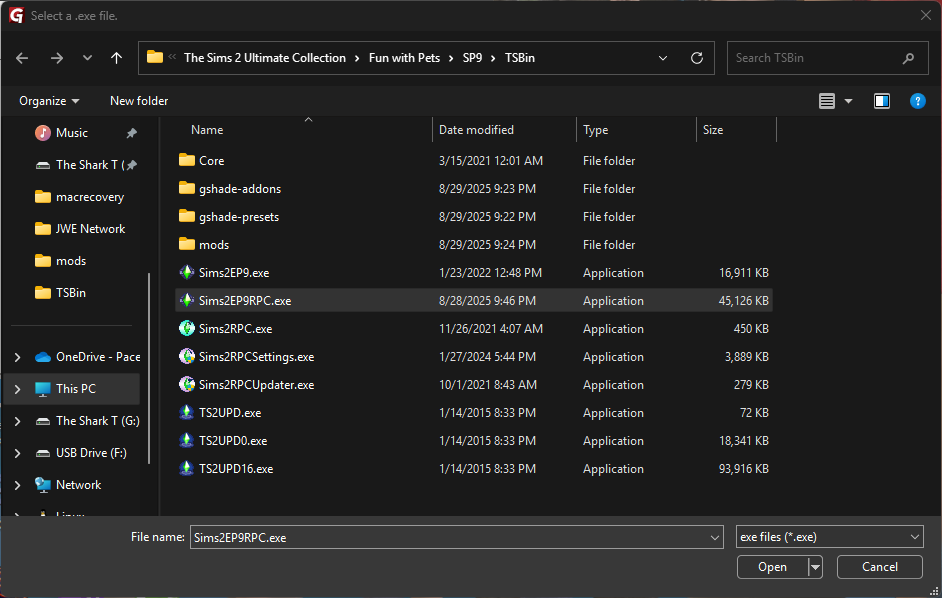 Find your Sims 2 Ultimate Collection in “TSBin” in “Program Files x86” and select “Sims2EP9RPC.exe” and click “Open”